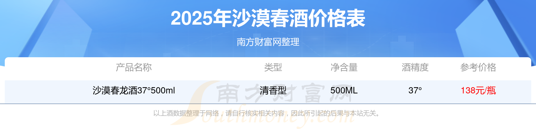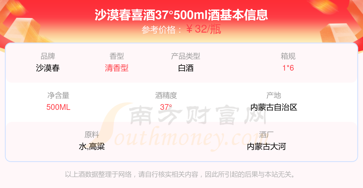沙漠春喜酒37°500ml基本信息