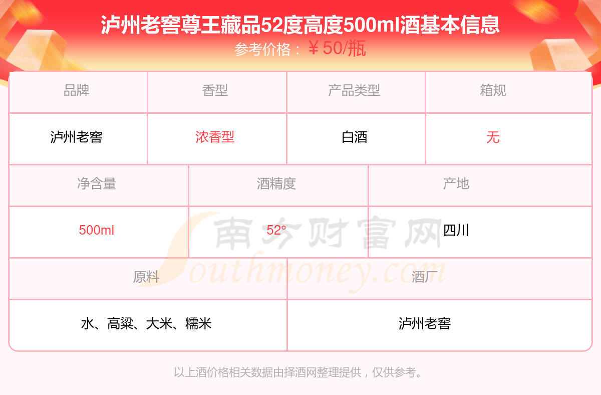 泸州老窖尊王藏品52度高度500ml基本信息