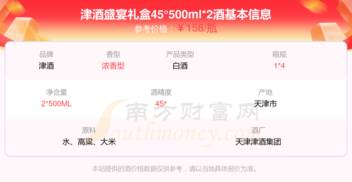 津酒盛宴礼盒45°500ml*2基本信息