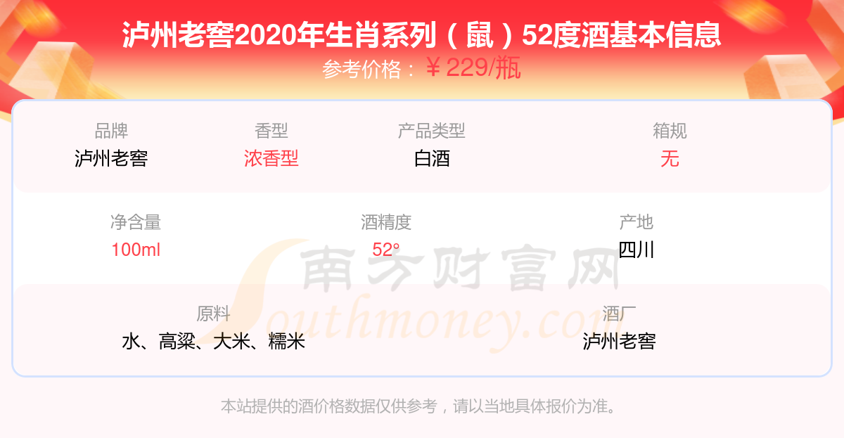泸州老窖2020年生肖系列(鼠)52度基本信息