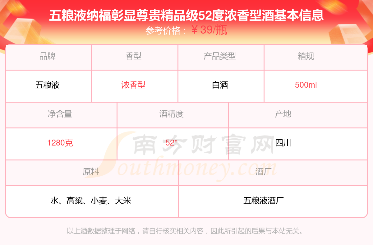 五粮液纳福彰显尊贵精品级52度浓香型基本信息