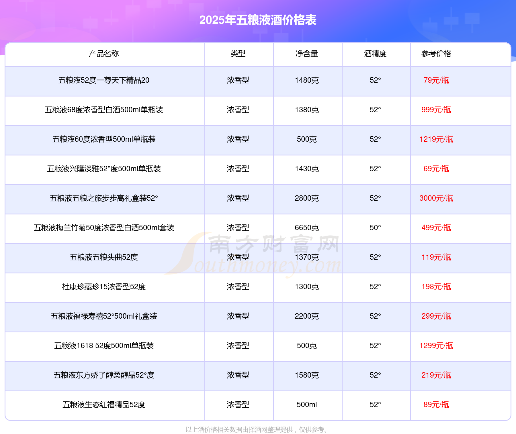 以上酒价格相关数据由择酒网整理提供,仅供参考。