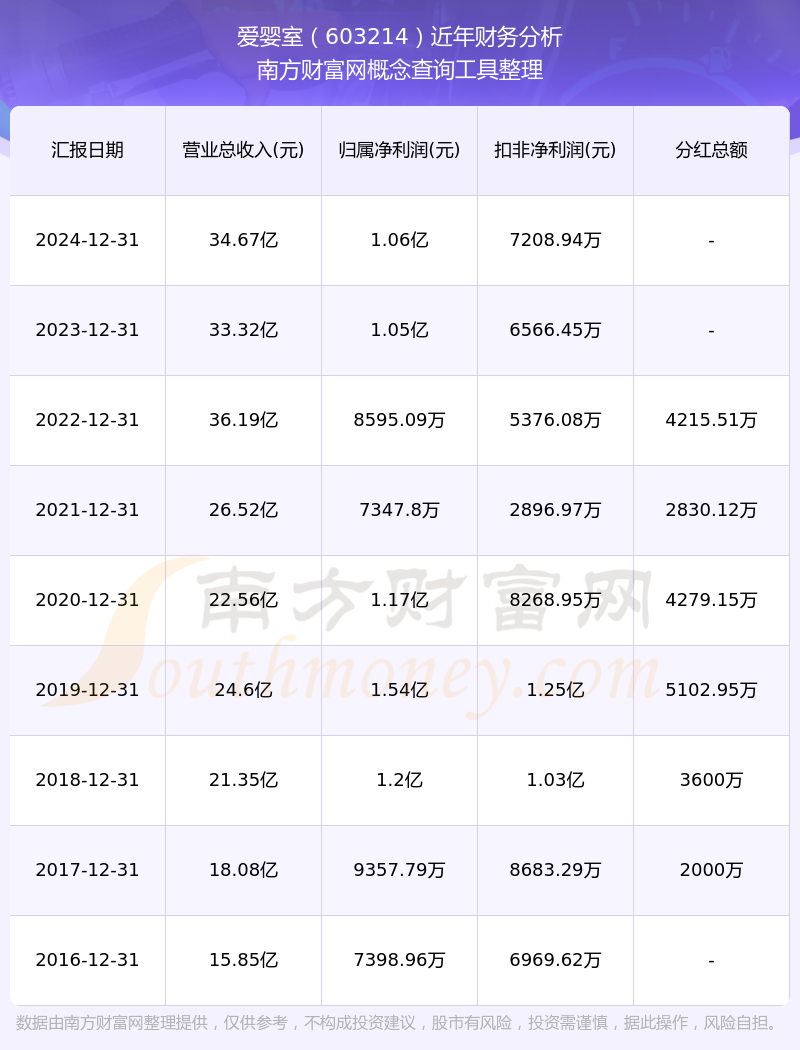2024年报显示,爱婴室实现营收34.67亿,同比增长4.06%;净利润1.06亿,同比增长1.61%;毛利率26.86%。
