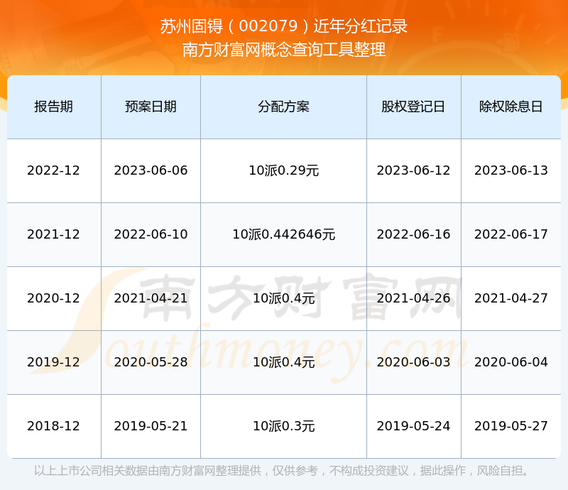 苏州固锝最新一次公布的分红方案为10派0.29元。本次权益分派股权登记日为2023年6月12日,除权除息日为2023年6月13日,派息日为2023年6月13日。