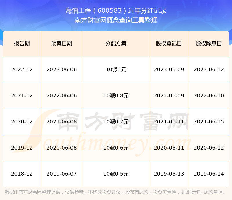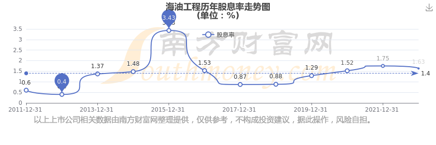 按照南方财富网趋势选股系统统计,海油工程所属行业为海工装备行业,海工装备行业分红排名情况如下表:
