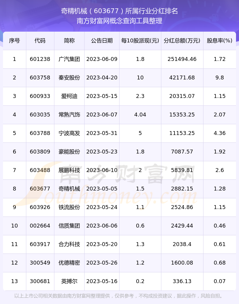 二、奇精机械603677行业分红排名