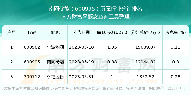 按照南方财富网趋势选股系统统计,南网储能所属行业为抽水蓄能行业,抽水蓄能行业分红排名情况如下表: