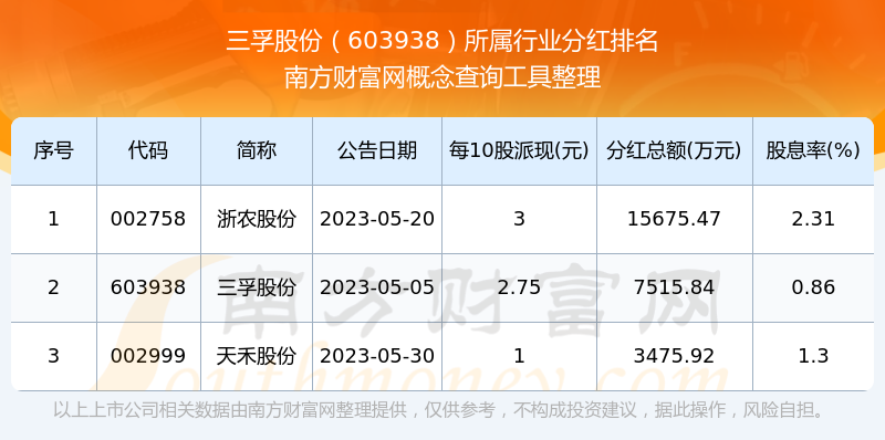 按照南方财富网趋势选股系统统计,三孚股份所属行业为有机硅行业,有机硅行业分红排名情况如下表:
