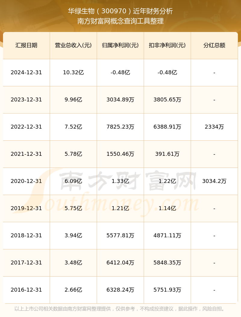 华绿生物公司2024年实现营收10.32亿元,净利润-4756.55万元,毛利率5.96%。