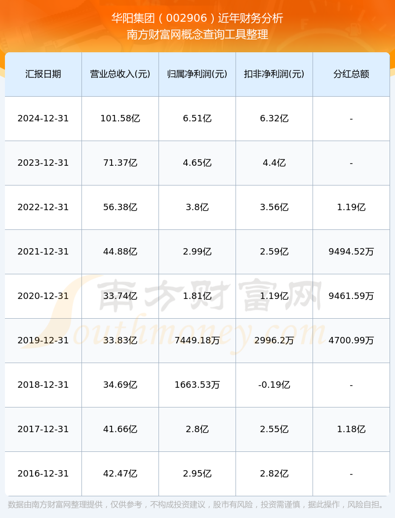 2024年报显示,华阳集团实现营收101.58亿,同比增长42.33%;净利润6.51亿,同比增长40.13%;毛利率20.69%。