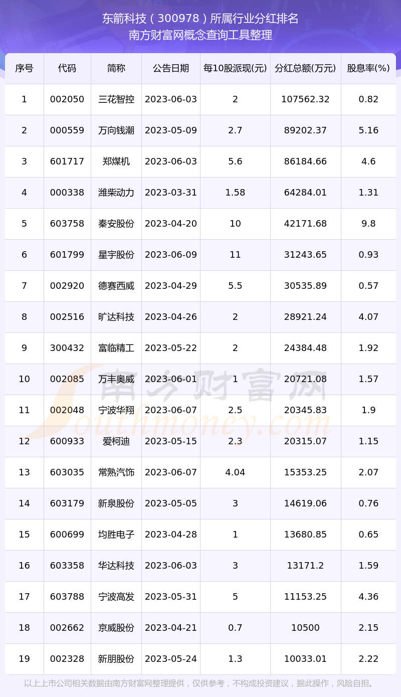 二、东箭科技300978行业分红排名