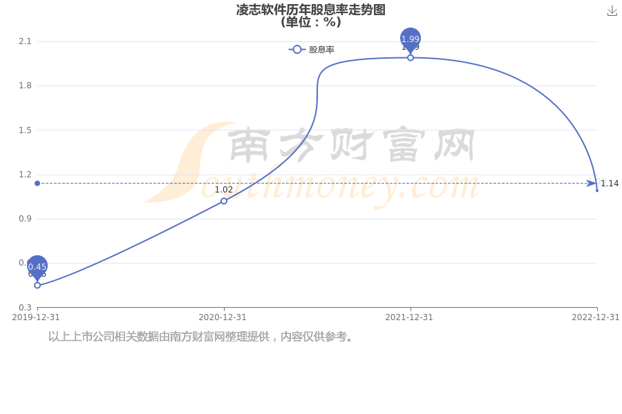 近年凌志软件年度股息率走势如下图: