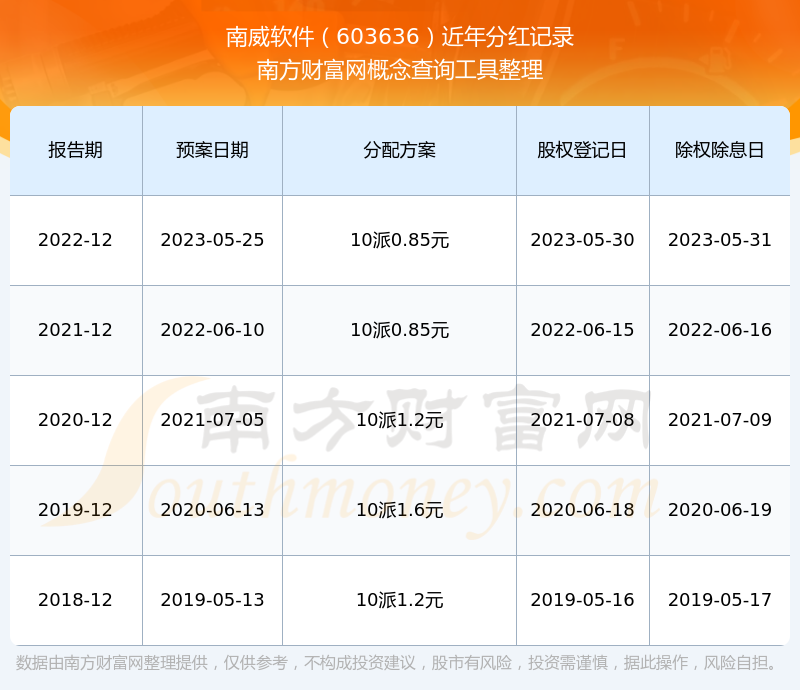 一、南威软件(603636)股票分红记录