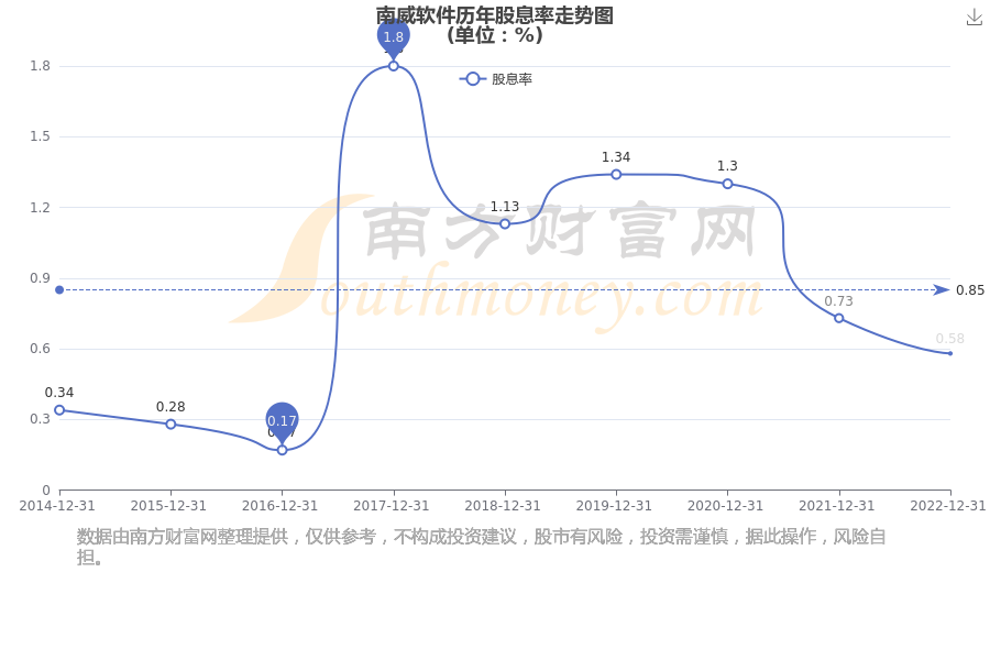 近年南威软件年度股息率走势如下图:
