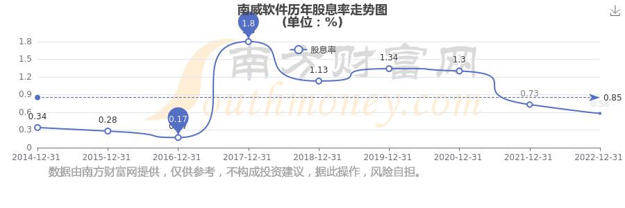 近年南威软件年度股息率走势如下图: