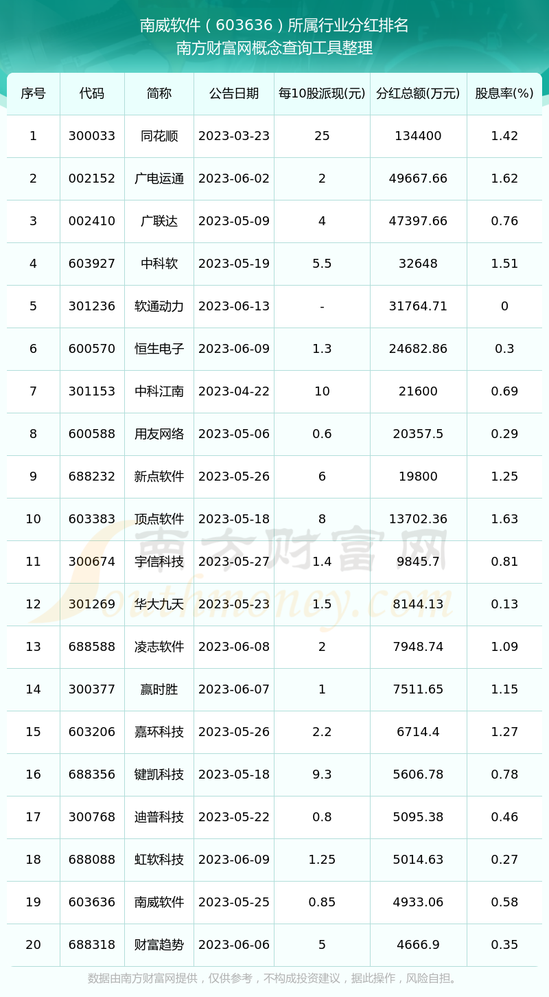 二、南威软件603636行业分红排名