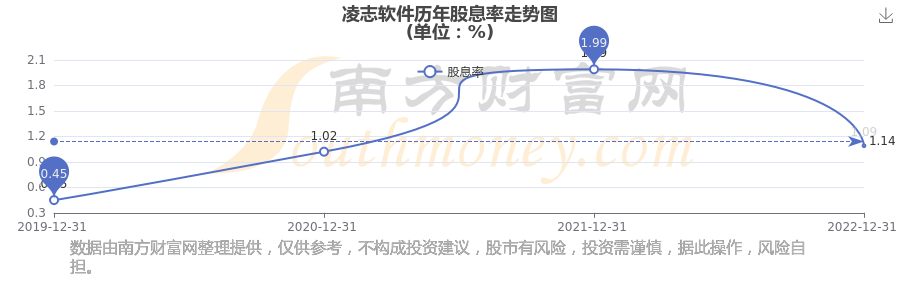 近年凌志软件年度股息率走势如下图: