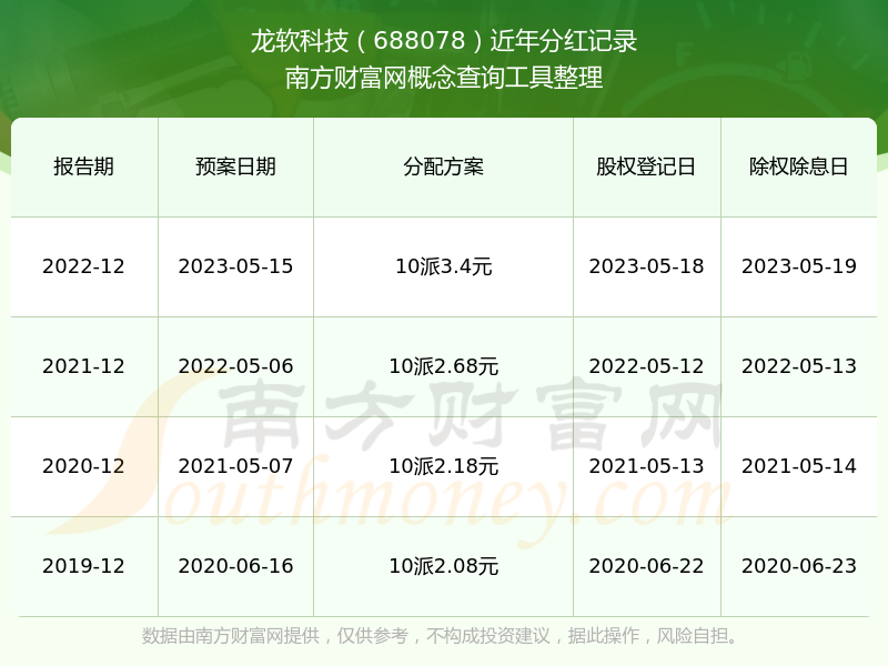 龙软科技最新一次公布的分红方案:10派3.4元。