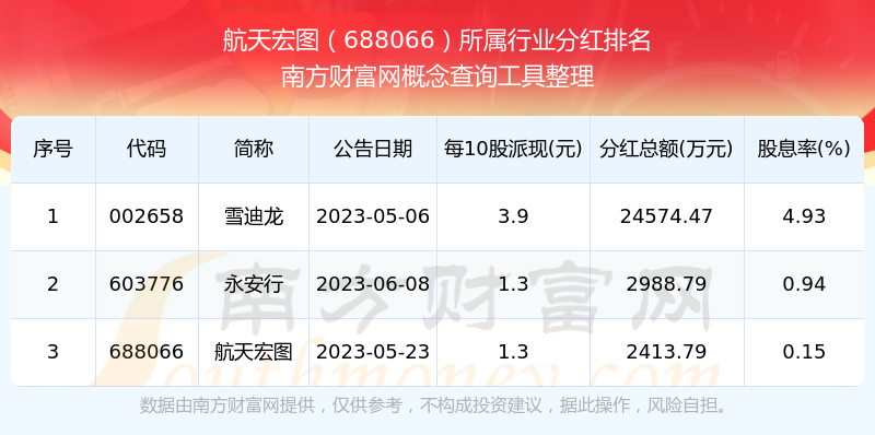 按照南方财富网趋势选股系统统计,航天宏图所属行业为软件系统行业,软件系统行业分红排名情况如下表: