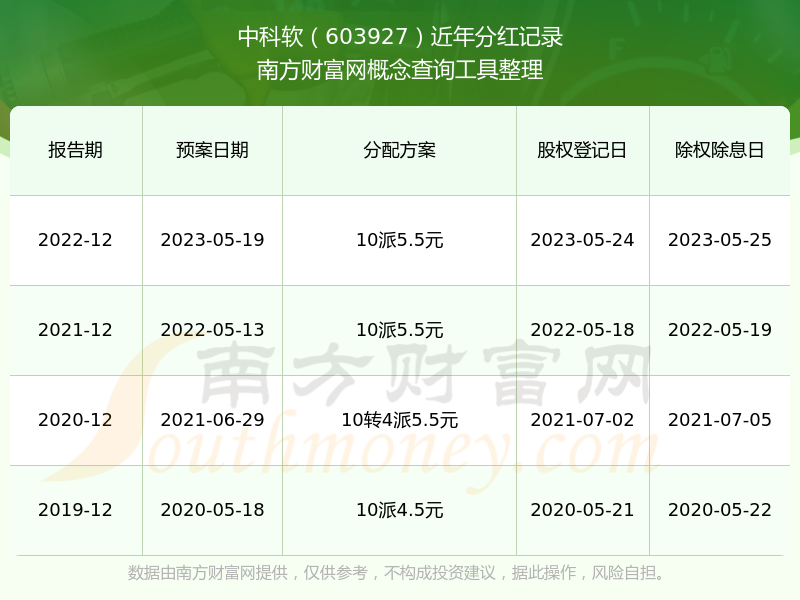 中科软最新一次公布的分红方案:10派5.5元。