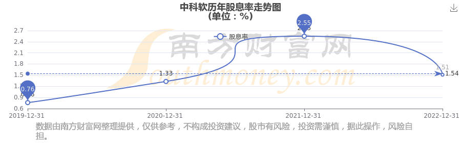 近年中科软年度股息率走势如下图: