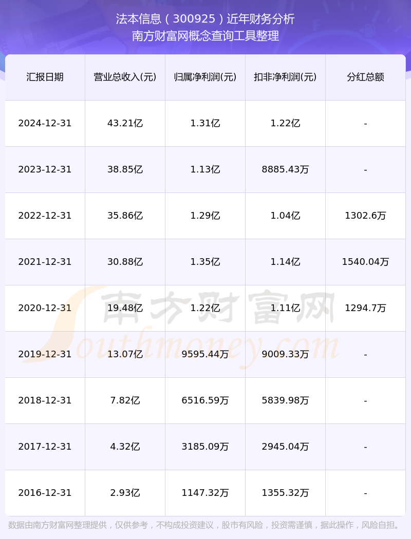 法本信息公司2024年实现营收43.21亿元,净利润1.31亿元,毛利率19.79%。