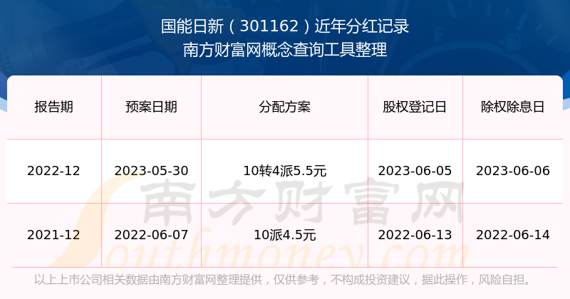国能日新最新一次公布的分红方案为10转4派5.5元。本次权益分派股权登记日为2023年6月5日,除权除息日为2023年6月6日,派息日为2023年6月6日。