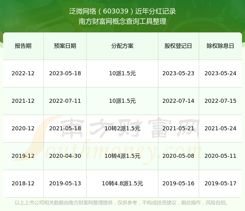 一、泛微网络(603039)股票分红记录
