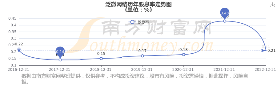近年泛微网络年度股息率走势如下图: