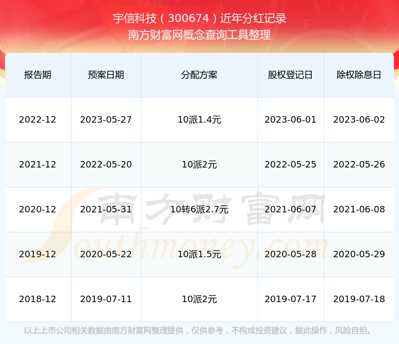 宇信科技最新一次公布的分红方案:10派1.4元。