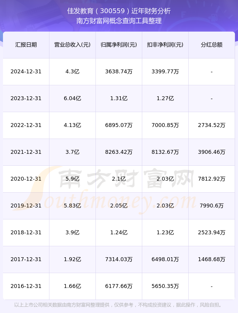2024年报显示,佳发教育实现营收4.3亿,同比增长-28.87%;净利润3638.74万,同比增长-72.23%;毛利率51.43%。