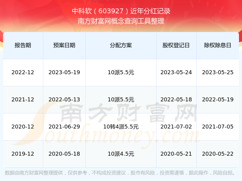 按照南方财富网趋势选股系统统计,中科软所属行业为软件开发行业,软件开发行业分红排名情况如下表:
