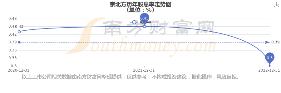 近年京北方年度股息率走势如下图: