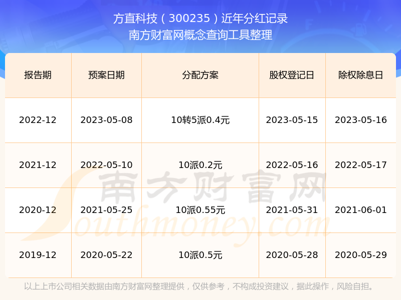 方直科技300235分红时间: