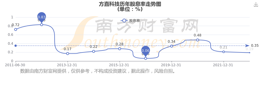 方直科技历年股息率走势如下图:
