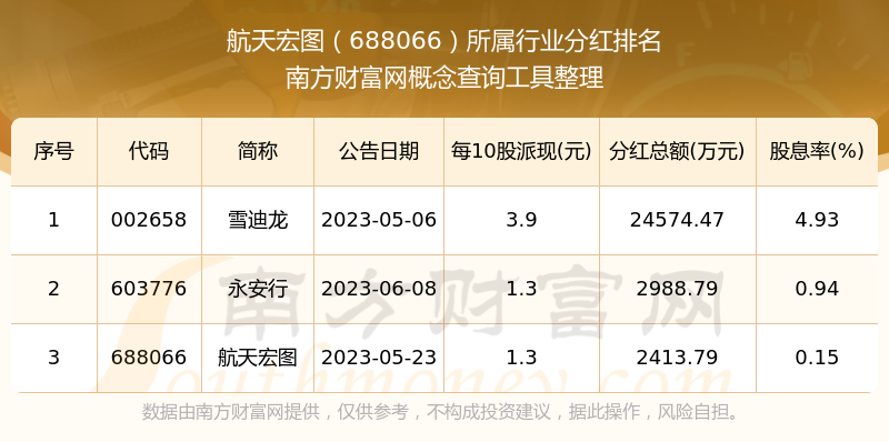 按照南方财富网趋势选股系统统计,航天宏图所属行业为软件系统行业,软件系统行业分红排名情况如下表: