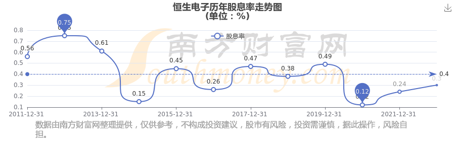 恒生电子历年股息率走势如下图:
