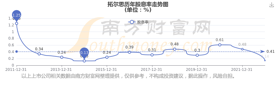 拓尔思历年股息率走势如下图:
