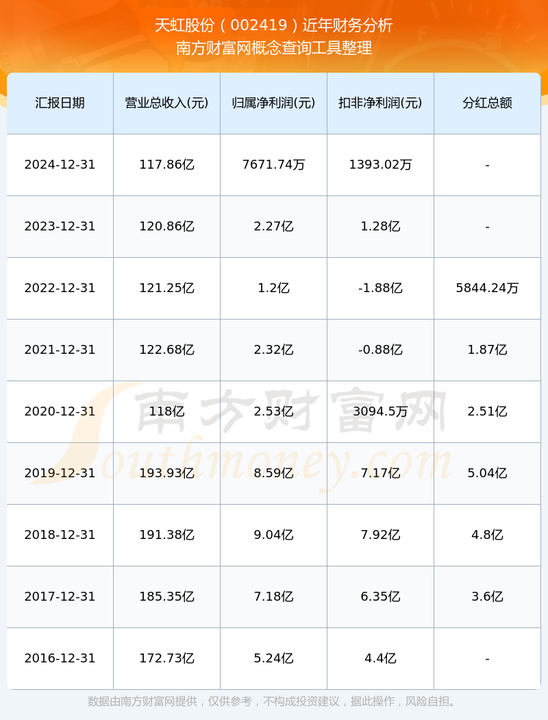 天虹股份公司2024年实现营收117.86亿元,净利润7671.74万元,毛利率36.89%。