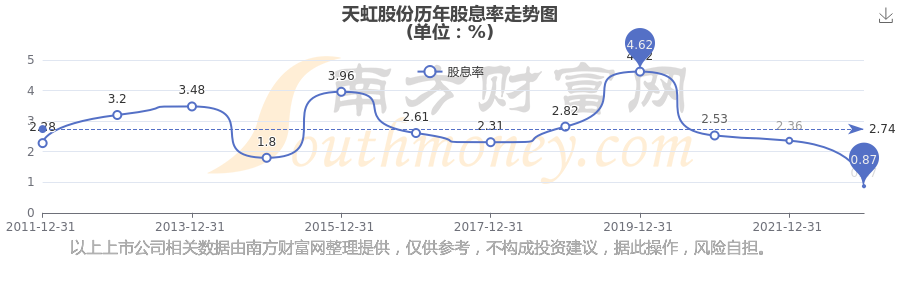 天虹股份最新一次公布的分红方案为10派0.5元。本次权益分派股权登记日为2023年4月27日,除权除息日为2023年4月28日,派息日为2023年4月28日。