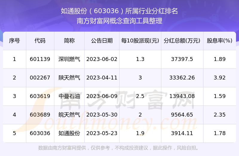 按照南方财富网趋势选股系统统计,如通股份所属行业为油气设服行业,油气设服行业分红排名情况如下表:
