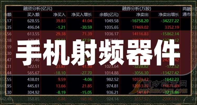 据南方财富网概念查询工具数据显示,手机射频器件相关题材有: