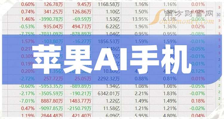 据南方财富网概念查询工具数据显示,苹果AI手机概念股龙头股有: