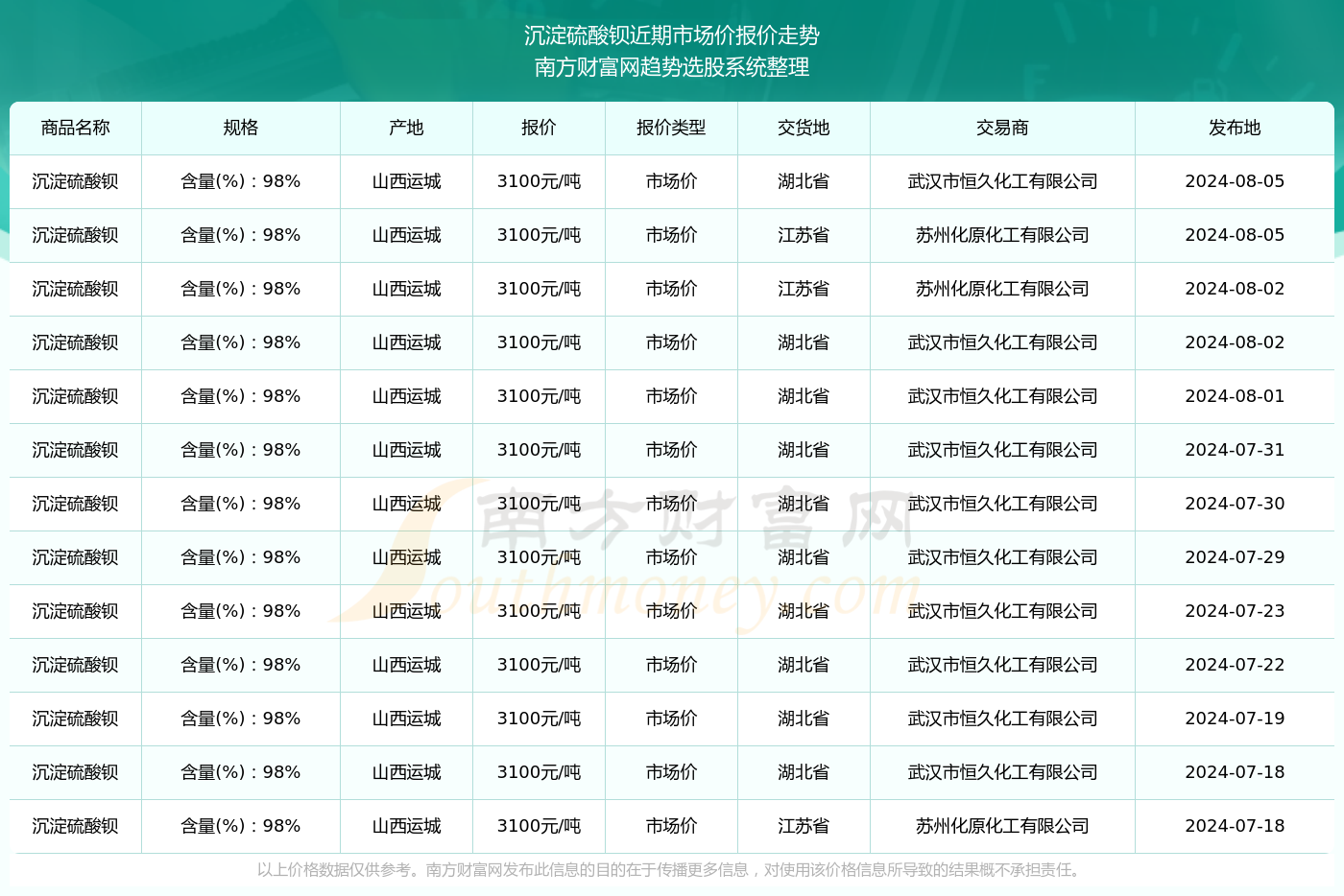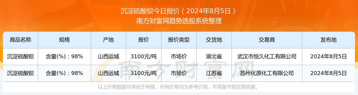 沉淀硫酸钡市场价报价行情(2024年8月5日)