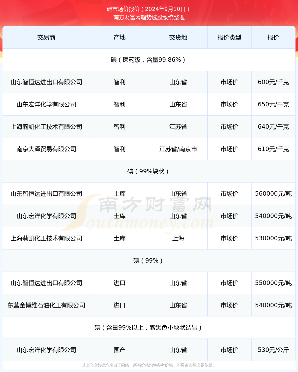 2024年9月10日碘最新价格