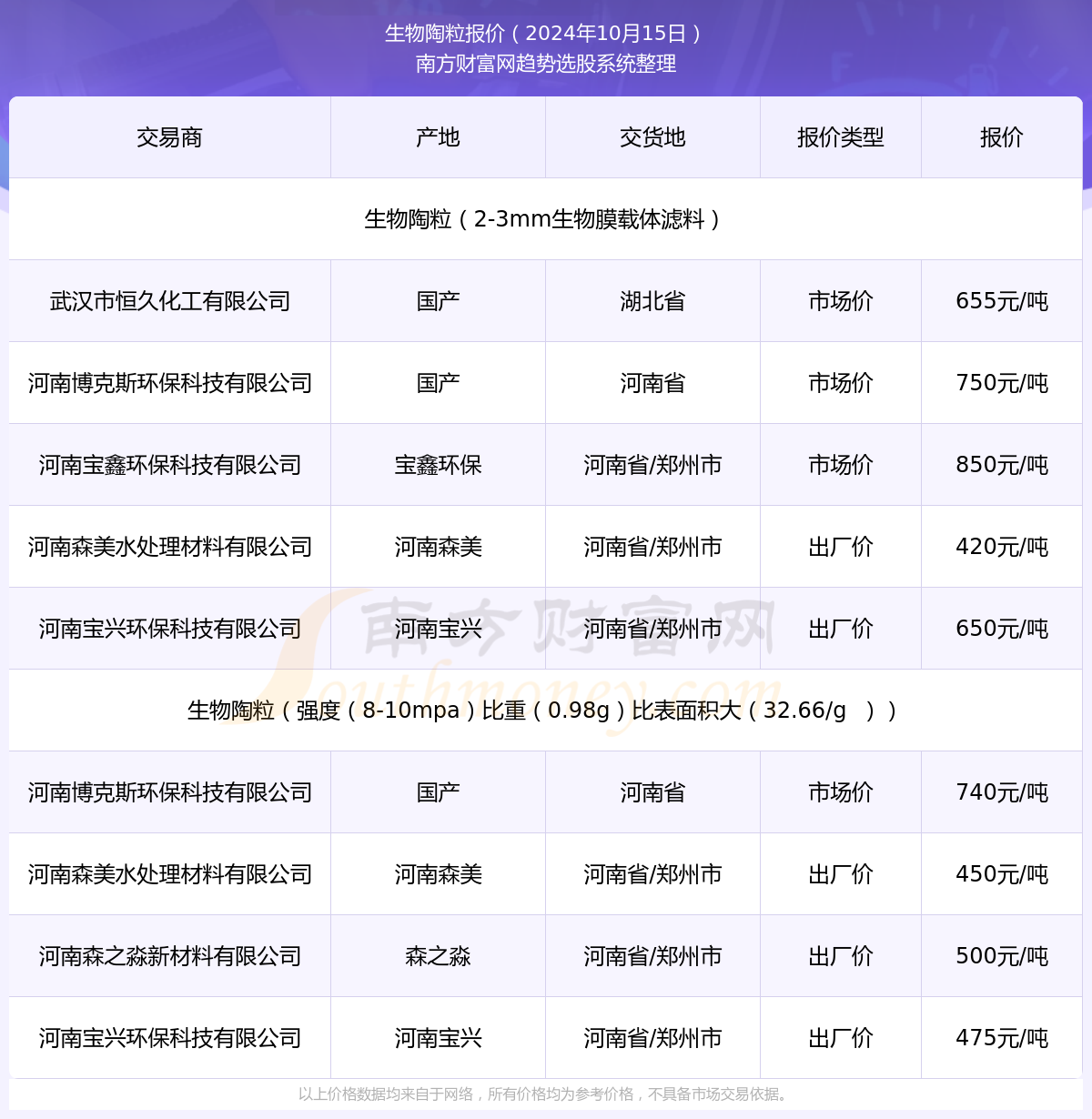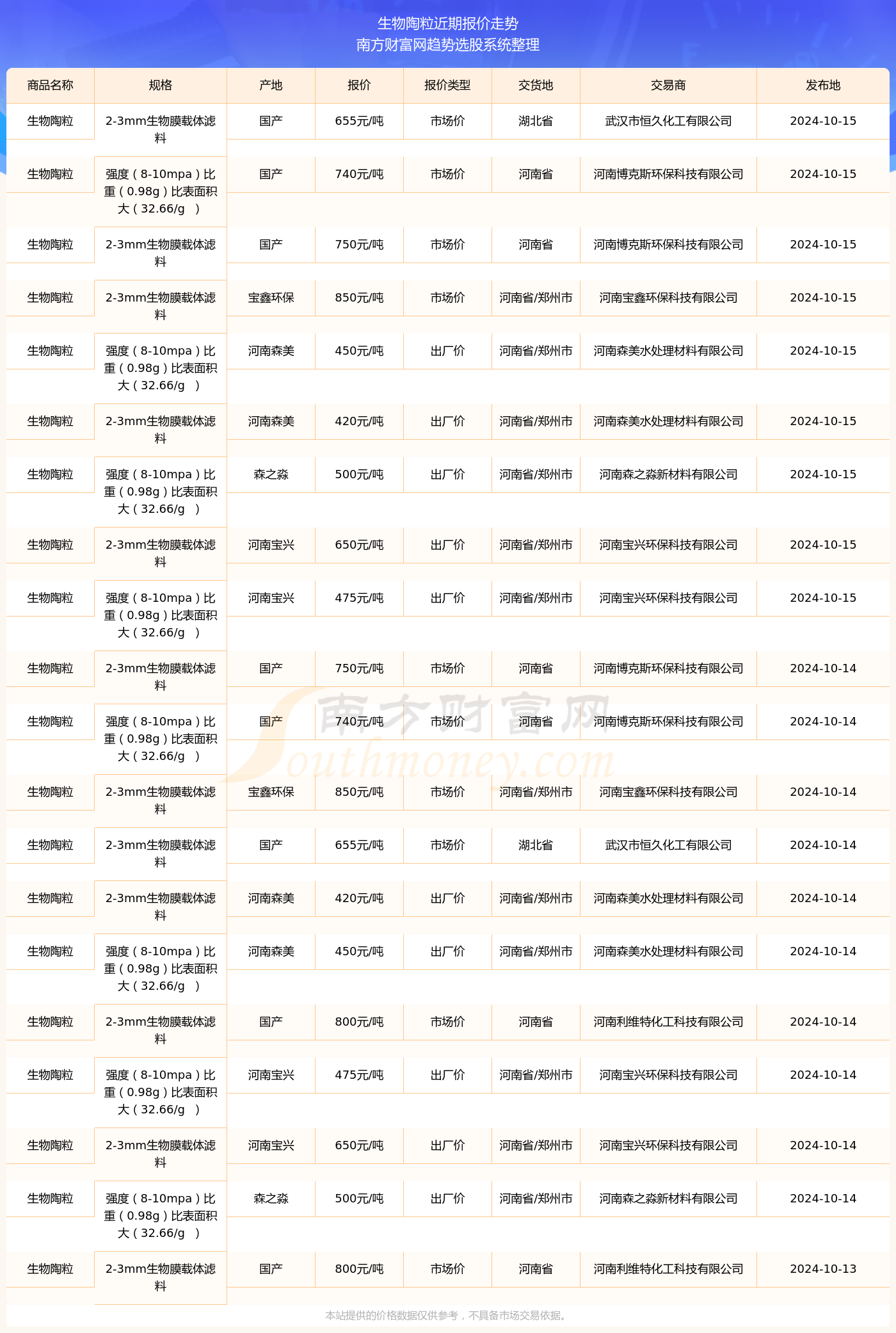 2024年10月15日生物陶粒最新价格