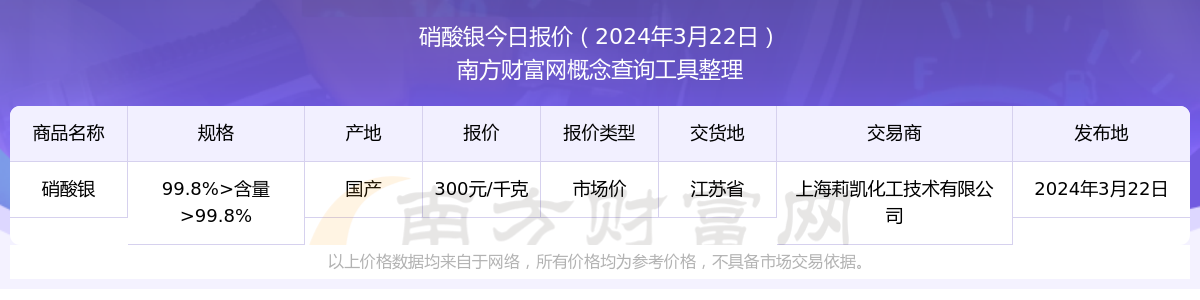 2024年3月22日硝酸银最新价格