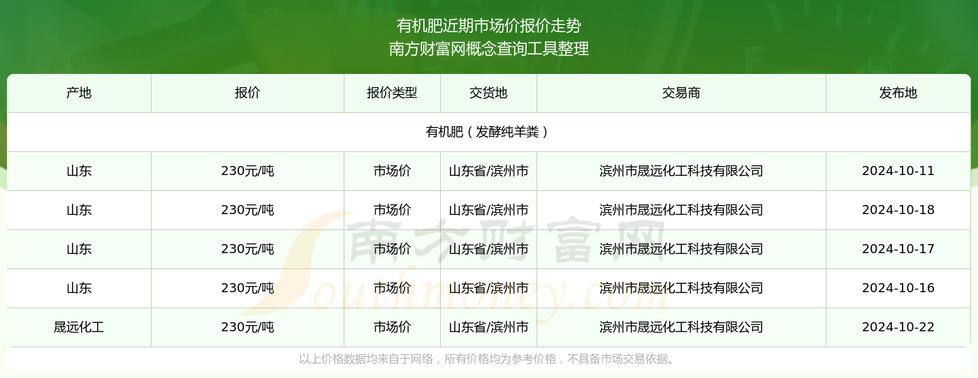 2024年10月22日有机肥市场价报价详情一览表
