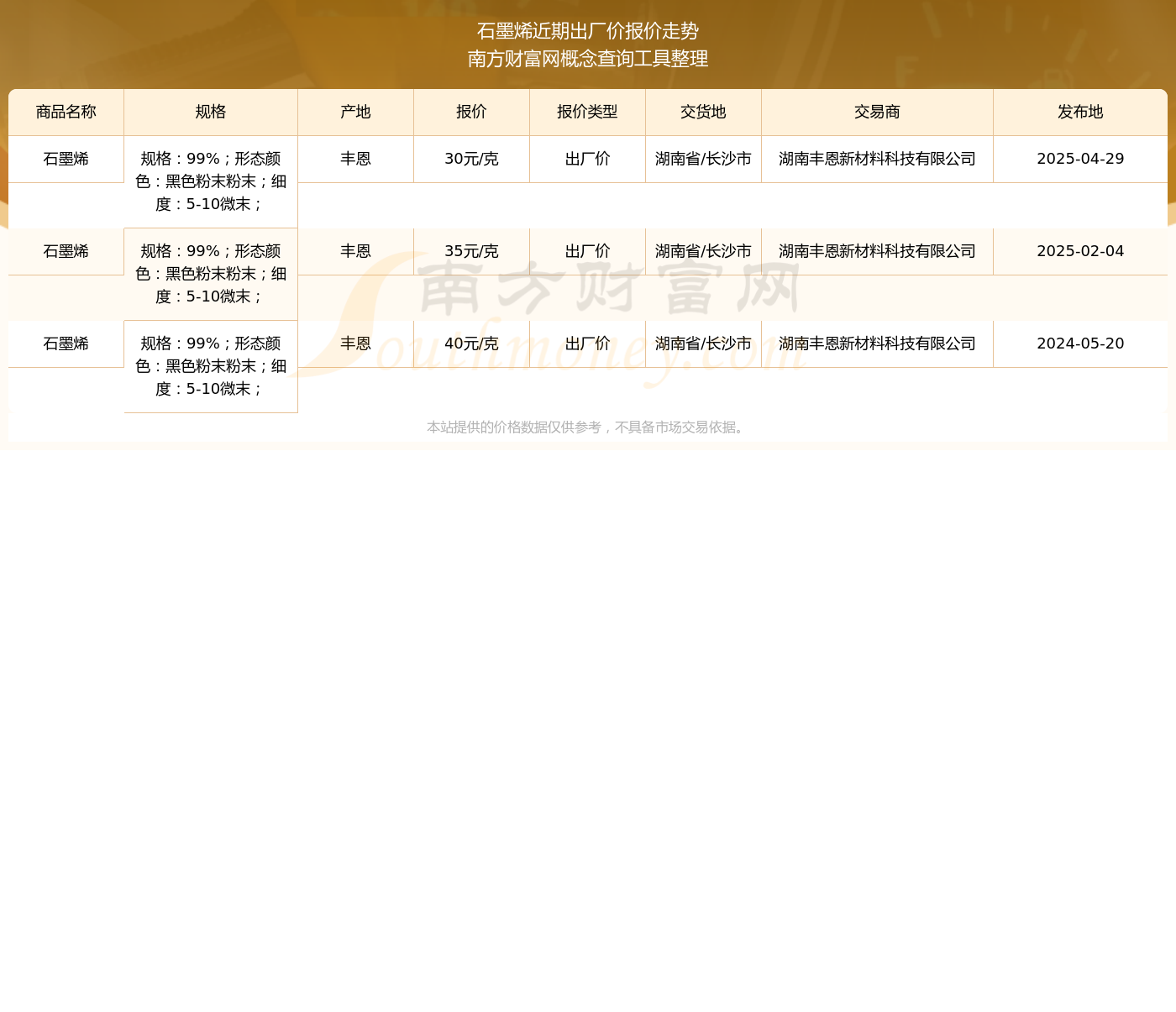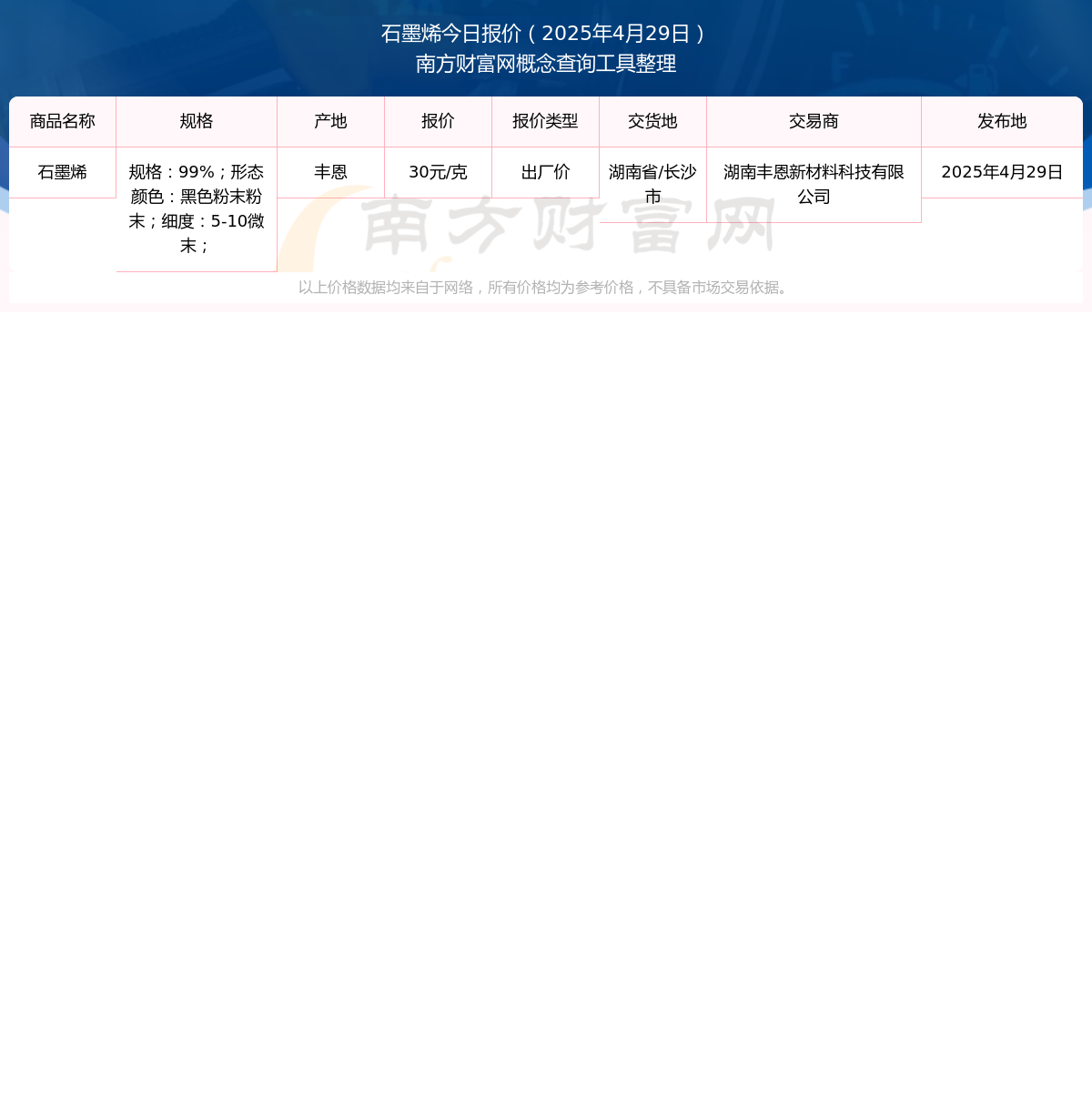 今日价格行情:2025年4月29日石墨烯出厂价报价