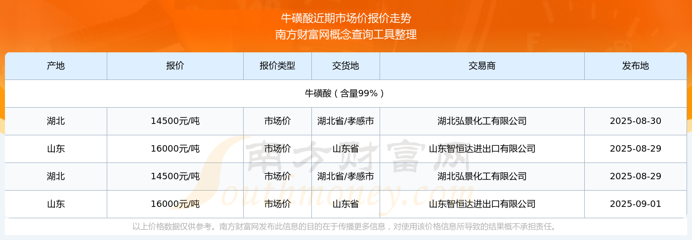 2025年9月1日牛磺酸市场价报价多少_近期价格走势